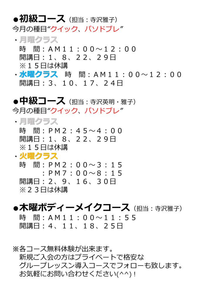 9月のグループレッスン